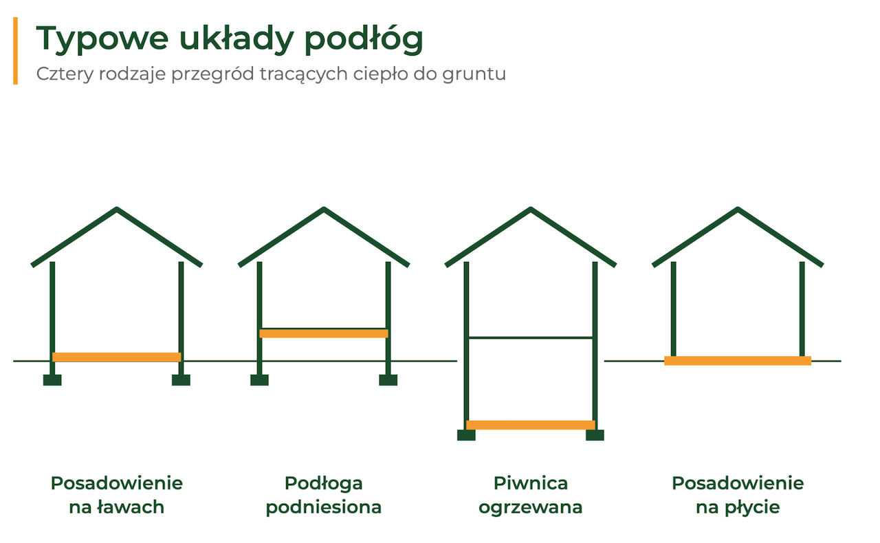 Podłoga to jedna z tracących ciepło przegród w budynku. W praktyce wyróżnić można cztery podstawowe rodzaje podłóg: