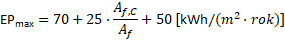 - Oświetlenie wbudowane: Dla rozpatrywanego przypadku należało doliczyć wartość 50 kWh/(m²·rok).
