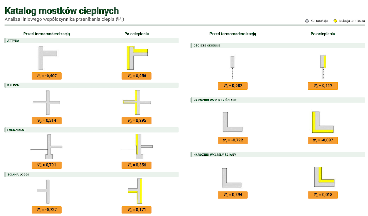 Przy jednoczesnym wzroście wartości liniowego współczynnika przenikania ciepła po termomodernizacji, w porównaniu do stanu istniejącego: