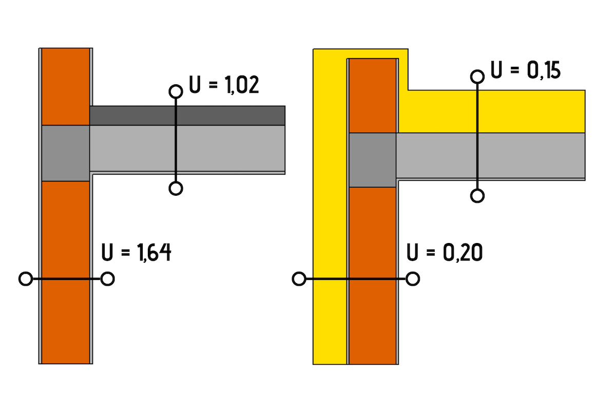 Oznacza to, że im lepszy standard energetyczny budynku chcemy osiągnąć, tym większą wagę należy przykładać do detali. Opisywany mostek termiczny da się rozwiązać w taki sposób, aby również po termomodernizacji przyjął on obliczeniowo nawet ujemną wartość. Jednocześnie należy pamiętać, że wartość ψₑ trzeba wyznaczać osobno dla każdego detalu, ponieważ drobna zmiana geometrii (np. przebiegu izolacji przez wieniec), może zauważalnie zmienić wynik.
