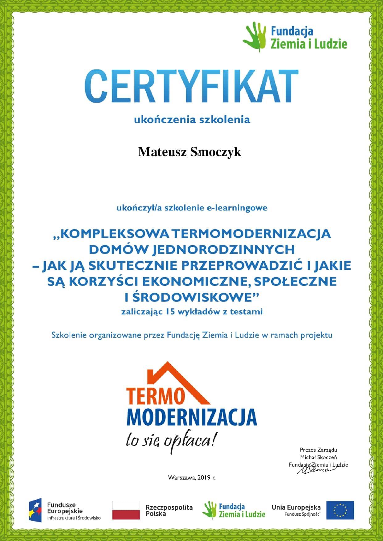 Członek Zrzeszenia w specjalności budownictwo oraz świadectwa charakterystyki energetycznej