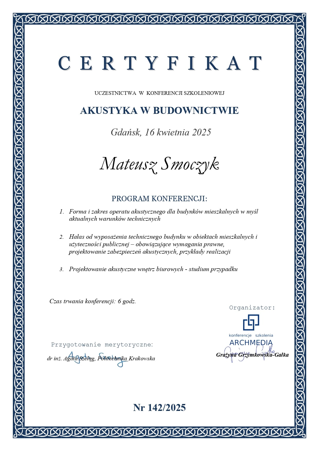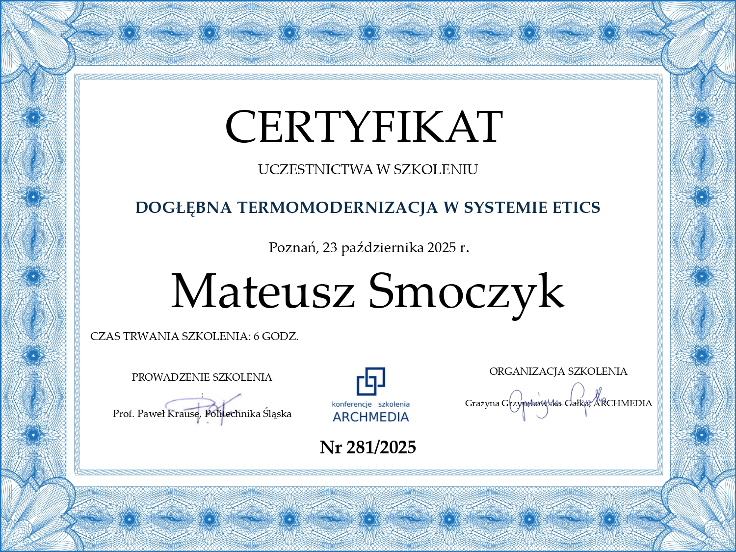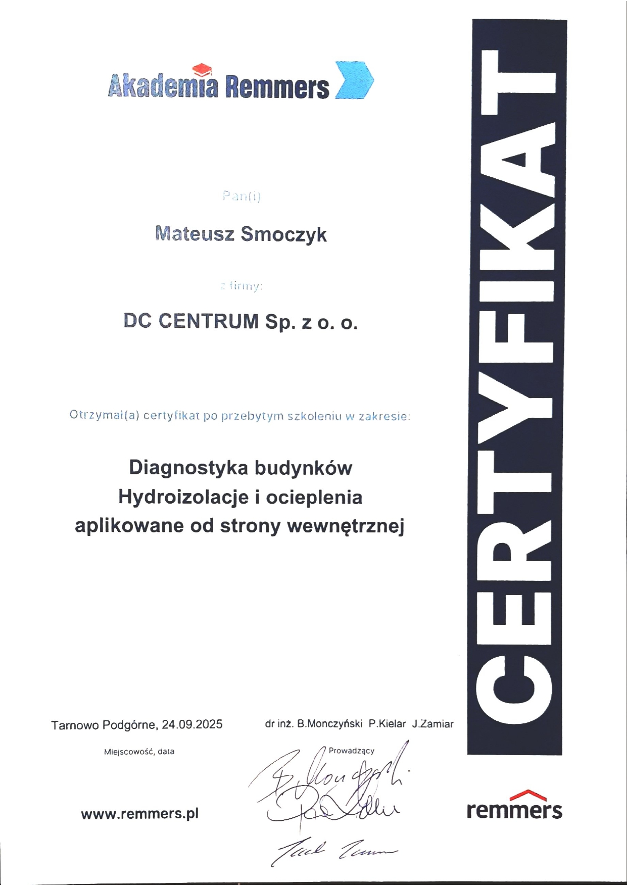 Obudziła się we mnie pasja do fizyki budowli oraz zagadnień związanych ze zdrowym budownictwem. Dzięki temu nie poprzestałem na ukończeniu uczelni. Cały czas poszerzam swoją wiedzę korzystając z publikacji oraz kursów i uczestnicząc w szkoleniach oraz konferencjach branżowych.